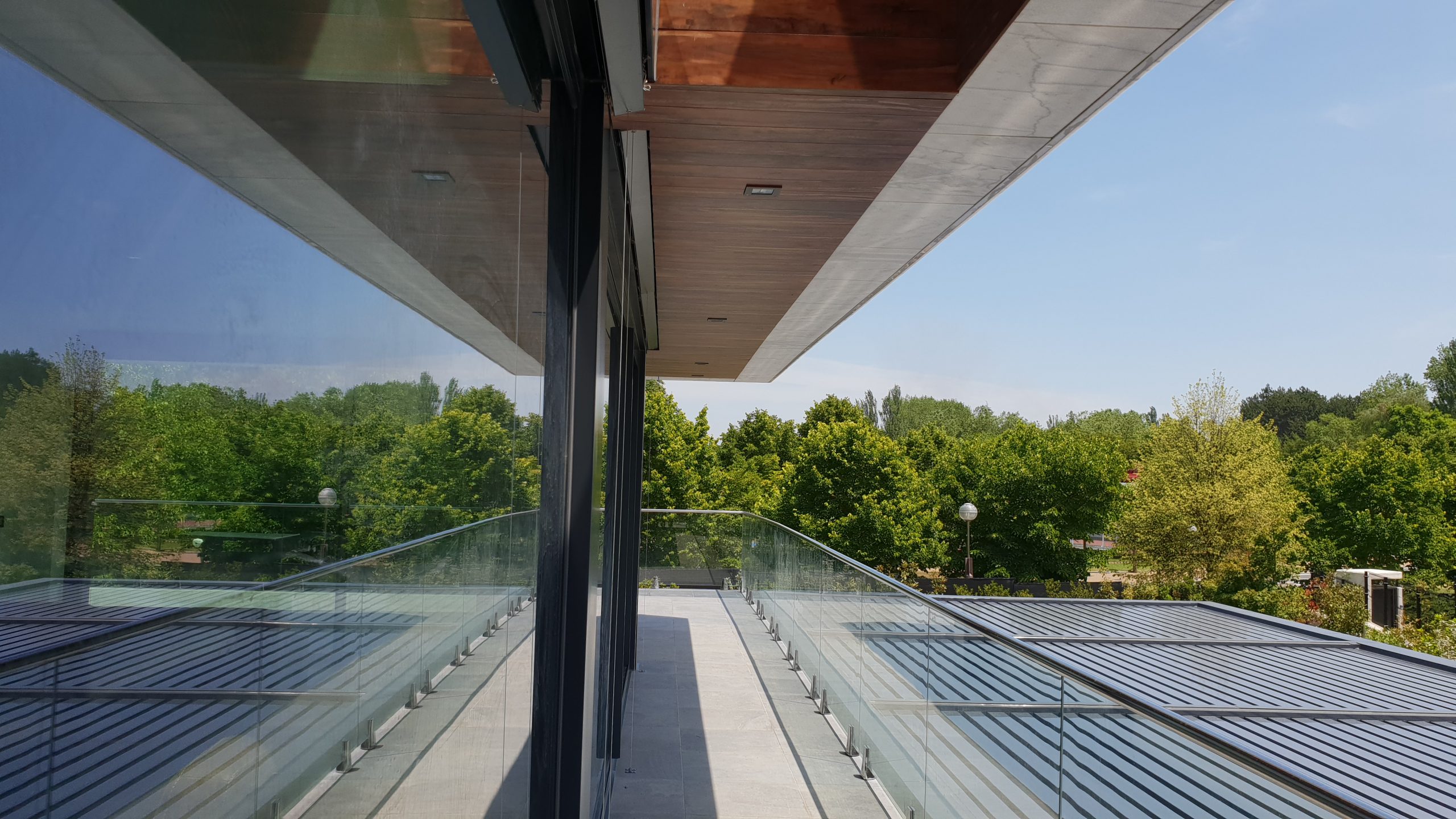 El acceso a la parcela se produce a través de una plaza desde la cual se organizan el portón del garaje, la rampa descendente hacia la piscina y las escaleras que ascienden apoyadas sobre la propia roca hasta alcanzar la entrada principal. Una vez en la vivienda, se accede a un amplio porche presidido por un compluvium, que enmarca la piscina y el paisaje. Este patio se convierte en el verdadero corazón del proyecto, hacia el que se orientan todas las estancias.