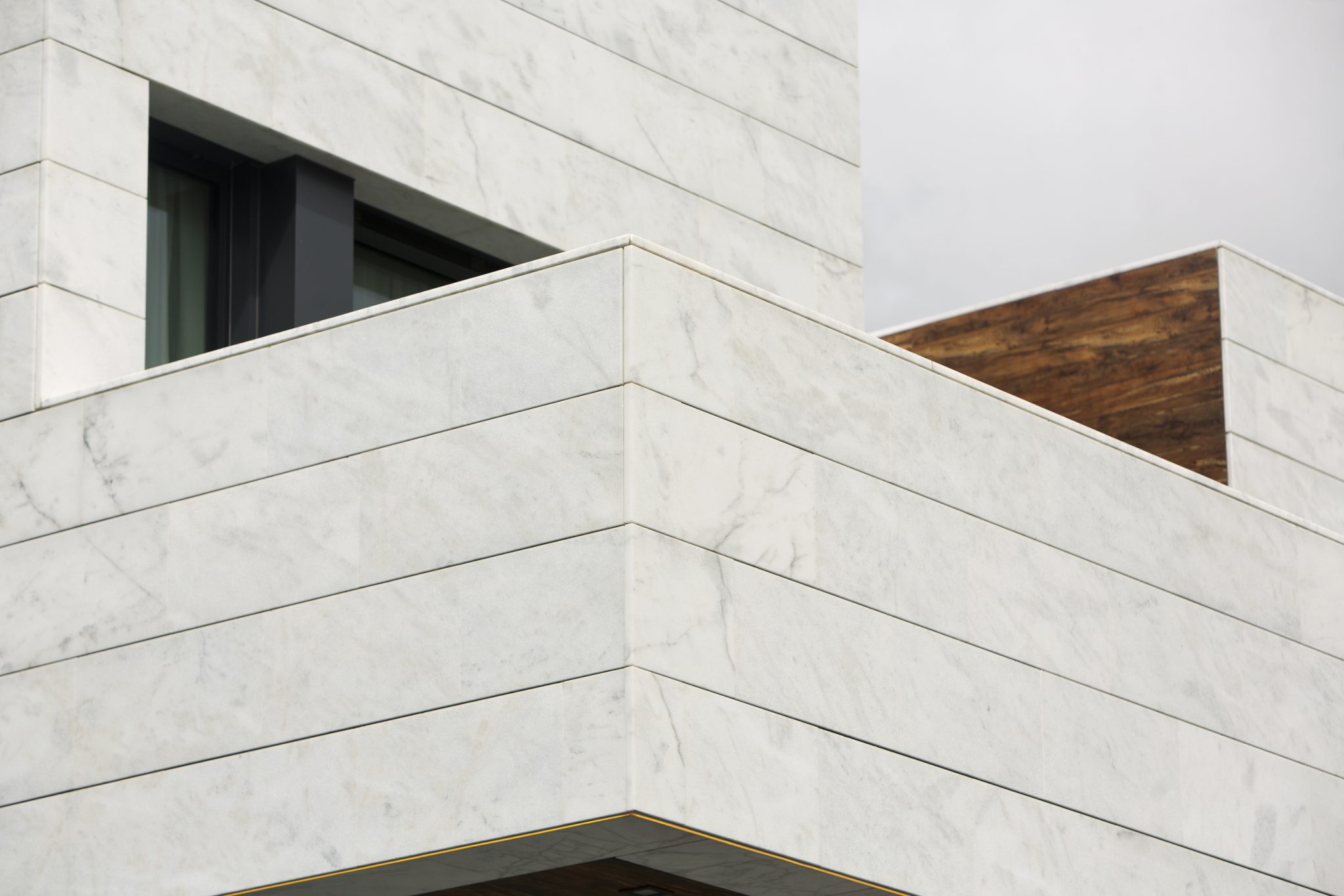 En cuanto a la materialidad, la fachada se reviste íntegramente de piedra, reforzando la idea de arraigo al lugar, mientras que el interior se resuelve en madera, aportando calidez y contraste. La disposición de los huecos permite graduar la relación visual con el entorno y optimizar el soleamiento. Con este fin, se proyecta una galería acristalada orientada al patio que actúa como colchón térmico, mejorando el comportamiento energético del conjunto. En contraposición, la fachada norte se presenta prácticamente ciega, protegiendo la vivienda del frío y la humedad.